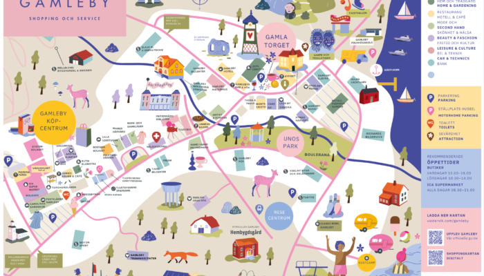 I Gamleby hittar du små mysiga kafeér och restauranger i en vacker miljö. Här finns det mesta man kan önska i form av service, shopping, kaféer och restauranger, sevärdheter, sport, friluftsliv och en genuin bykänsla kryddad av en rik historia. Att göra i Gamleby Evenemang i Gamleby Håll dig uppdaterad om allt som händer i Bynn! Asset 1 arrow-right-small Det lokala presentkortet DU KÖPER PRESENTKORTET FÖR VÄSTERVIK CITY & GAMLEBY HOS --> GAMLEBY: ICA Supermarket. VÄSTERVIK: Hemköp, Floristhuset, ICA Maxi och Västerviks Turistbyrå. Asset 1 arrow-right-small Shopping & service Karta över Gamleby med information om butiker inom hem och trädgård, lek och fritid, livsmedel, mode, restaurang, hotell och kafé, skönhet och hälsa med mera. Produceras av Gamleby Bysamverkan (2026) Öppna pdf Asset 1Öppna pdf Garpedansberget Garpedansberget ligger i Gamleby och är 70 meter högt. Här finns en spännande skulpturstig med 87 stycken fantasivarelser. Konstnäre... Asset 1 arrow-right-small Gamla torget, Gamleby Gamlebys trekantiga gamla torg med kullersten och gatstensbeläggning är ett av få trekantiga torg i Sverige. På torget står också ... Asset 1 arrow-right-small Torghandel, lokalt & närproducerat Torghandlarn Svängis bjuder in till småskalig Torgförsäljning av närproducerat, allt från säsongens frukt och bär, viltprodukter, sylt, marmelader, senap, honung, med mera.. Gamleby Köpcentrum torsdagar och fredagar 10-14 Öppna pdf Asset 1Öppna pdf Gamleby Folkpark Listan på artister som stått på Folkparkens scen kan göras lång. Hootenanny Singers stod under många år för säsongspremiären. Sven... Asset 1 arrow-right-small Classic Bowl Bowlinghall i Gamleby. I Gamleby finns en modern bowlinghall med restaurang. Här finns bowling, shuffleboard och dart att aktivera sig m... Asset 1 arrow-right-small Tjust Bio i Gamleby En biograf i Gamleby som ligger cirka 23 km norr om Västervik. Tjust Bio ligger i en flygel till närliggande Åby Herrgård. Aktuellt ... Asset 1 arrow-right-small Gamleby Kulturhus Utöver sin långa historia som tingshus är Gamleby Kulturhus idag en levande mötesplats för kultur, skapande och olika typer av arrangem... Asset 1 arrow-right-small Lekplats Skeppet i Gamleby Skepp o hoj, landkrabbor! Nu har delar av Ernebergsfältet i Gamleby förvandlats till en plats för busiga små och stora vikingar. Lekplat... Asset 1 arrow-right-small HITTA BOENDE I GAMLEBY Gamleby Hotell Hotellet ligger precis intill det unika triangeltorget (Gamla torget), Unos park och Garpedansberget. Ett familjeägt hotell mitt i Gaml... Asset 1 arrow-right-small Pensionat Ullevi Pensionat Ullevi hittar du vackert beläget nära naturen i herrgårdsmiljö och med utsikt över Gamlebyviken. Här finns både enkelru... Asset 1 arrow-right-small KustCamp Gamleby Camping Fyrstjärnig familjecamping i mysiga Gamleby, ca två mil norr om Västervik. Över 100 campingplatser i kuperad miljö med sjöläge och 44... Asset 1 arrow-right-small Vartorps Bed & Breakfast Fyrstjärnigt boende med garanterad sjöutsikt som ligger i södra utkanten av Gamleby 23 km norr om Västervik. Gångavstånd till Gaml... Asset 1 arrow-right-small Ställplats Gamleby Ställplats Varvet ligger precis intill vattnet, med närhet till Gamlebys utbud av butiker, restauranger, caféer och frisörsalonger. Boka din plats Asset 1Boka din plats ÄT GOTT I GAMLEBY Pizzeria Fungi Pizzeria Fungi har pizza, sallad, kebab, falafel, schnitzel, hamburgare, lövbit och dryck. Rätterna består alltid av färska råvar... Asset 1 arrow-right-small Restaurang & Pizzeria Montecristo Restaurang och pizzeria med mysig uteservering vid det gamla torget i Gamleby. Har stort utbud och serverar lunch, pizza och à la carte.... Asset 1 arrow-right-small Gamlebýs Bar & Kök Gamlebýs Bar & Kök med utsikt över Gamla torget. Här serveras dagens lunch och kvällstid burgare, pizza ala carte. Det finns flera alternativ till barnen. Här kan du även spela dart. Asset 1 arrow-right-small Pelles Krog Restaurang med viltmeny och närproducerat som tema. Från skog till bord. Pelles Krog ligger vid KustCamp Hammarsbadet med utsikt över Gam... Asset 1 arrow-right-small Linnéas Konditori & Catering Konditori, bageri och catering i Gamleby Café som erbjuder mysig atmosfär och god fika och lunch Linnéas Bageriet... Asset 1 arrow-right-small Juniés Krubb & Café Här serveras allt från fika, smörgåsar, pannkakor och dagens lunch. I Gamleby Köpcentrum kan du avnjuta något gott efter en shoppingr... Asset 1 arrow-right-small Byfiket På Gamlebys trekantiga torg ligger kafé Byfiket med presentbutik Kafé med fikabröd, smörgåsar, sallader och dagens lunch samt cat... Asset 1 arrow-right-small SHOPPA I GAMLEBY Ica Supermarket Gamleby Välsorterad livsmedelsbutik i Gamleby Köpcentrum.... Asset 1 arrow-right-small Leifs Verktyg och Trädgård Vid det gamla torget mitt i byn ligger Leifs Verktyg och Trädgård. En klassisk, välsorterad järnhandel med proffsig service. Asset 1 arrow-right-small Butik Blomstra Fin blomsteraffär i Gamleby Köpcentrum, med allt från säsongens blommor till snittblommor och fina arrangemang. Asset 1 arrow-right-small Systembolaget Gamleby Systembolaget ligger intill Gamleby Köpcentrum.... Asset 1 arrow-right-small Festkläder Gamleby Festkläder Gamleby syr dina festkläder och har uthyrning av klänning, frack med mera. Finns i samma lokal som Carolinas Garderob i Gamleby Köpcentrum. Du måste boka ditt besök! Asset 1 arrow-right-small Tjust Bilförsäljning Här finns butik, biltvätt, verkstad, uthyrning av släpkärror, bilförsäljning – ja allt inom bil. Asset 1 arrow-right-small Motorsport Butiken med det breda sortimentet med allt från cyklar, skog och trädgårdsprodukter. Butiken har även en verkstad. Asset 1 arrow-right-small Pressbyrån Pressbyrån är en mötesplats i Gamleby med generösa öppettider.... Asset 1 arrow-right-small Lilla Lekstugan Välsorte